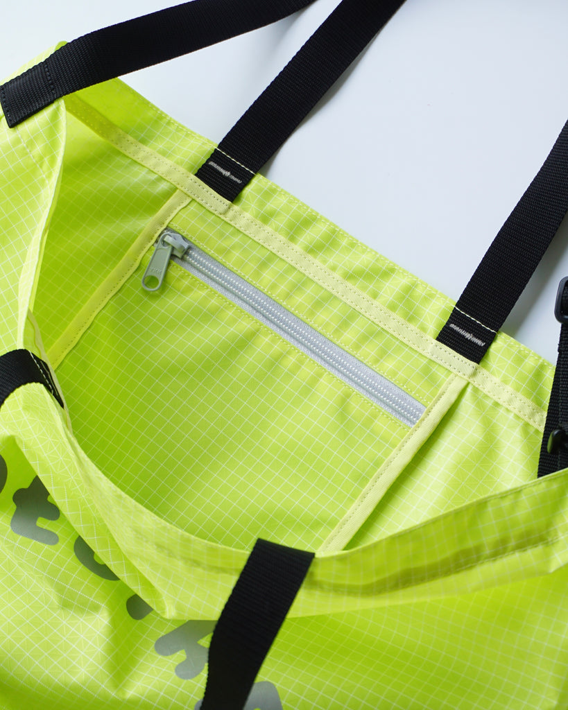 Print tote bag|Yellow ¥14,850 (税込) 他のバリエーション Default Title 個数 カートに入れる 現在売り切れとなっています トート、ショルダーバッグにもなる2WAYバッグ生地はTsunooga® RIPを使用引き裂きや摩耗に非常に強く、また軽量性と撥水性に優れていますプリントとネームは光に反射するリフレクト仕様 ■ サイズ本体|横41.5cm × 縦40cm × マチ8cmポケット|横16.5cm × 縦17cm持ち手|49cmショルダー調節可|59〜91cm ■ 素材 |ナイロン93%・ポリエチレン7%■ 生産国 |日本